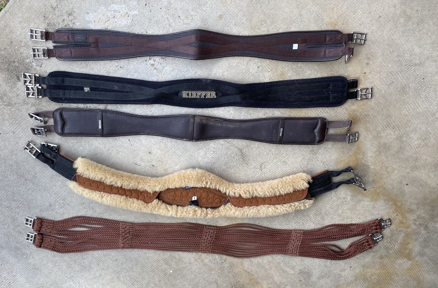 Synthétique nouvelle génération (Wintec) ou cuir (Bates), certains modèles existent en deux matières, d’autres sont réservés à une seule marque. Modèles mixtes, obstacle, dressage et endurance, il y en a pour tous les besoins côté cavalier, mais en restant dans du prêt-à-porter (pas de quartiers plus longs/plus projetés disponibles).